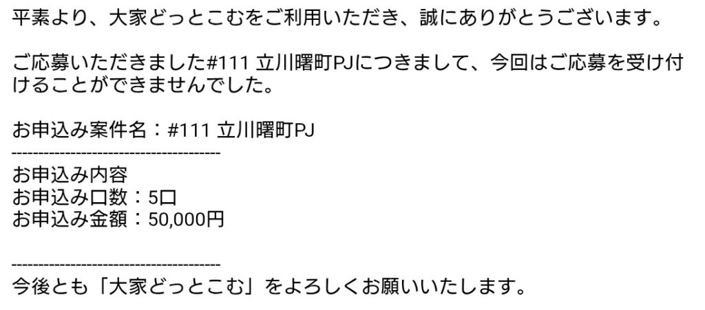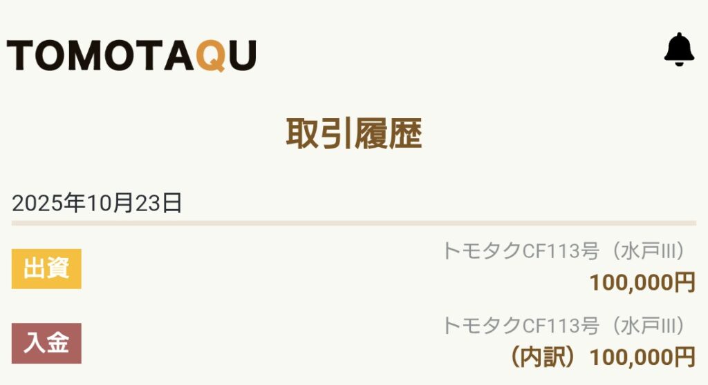 2025/10/23の投資状況 ソーシャルレンディング X Facebook はてブ Pocket LINE コピー 2025.10.232025.10.26 目次 2025/10/23の投資状況TOMOTAQ大家どっとこむ 2025/10/23の投資状況 TOMOTAQ 申し込み後のメールが届かないのでマイページのスクショ。メール届かないのは何か不具合ですかね? 入金も完了 大家どっとこむ 落選でした…。